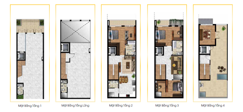 Thiết kế tầng lửng độc đáo trong tầng 1, giúp gia tăng lợi ích sử dụng, tạo nên sự khác biệt đồng thời phù hợp với đa dạng mô hình kinh doanh: cafe, nhà hàng, shop thời trang…